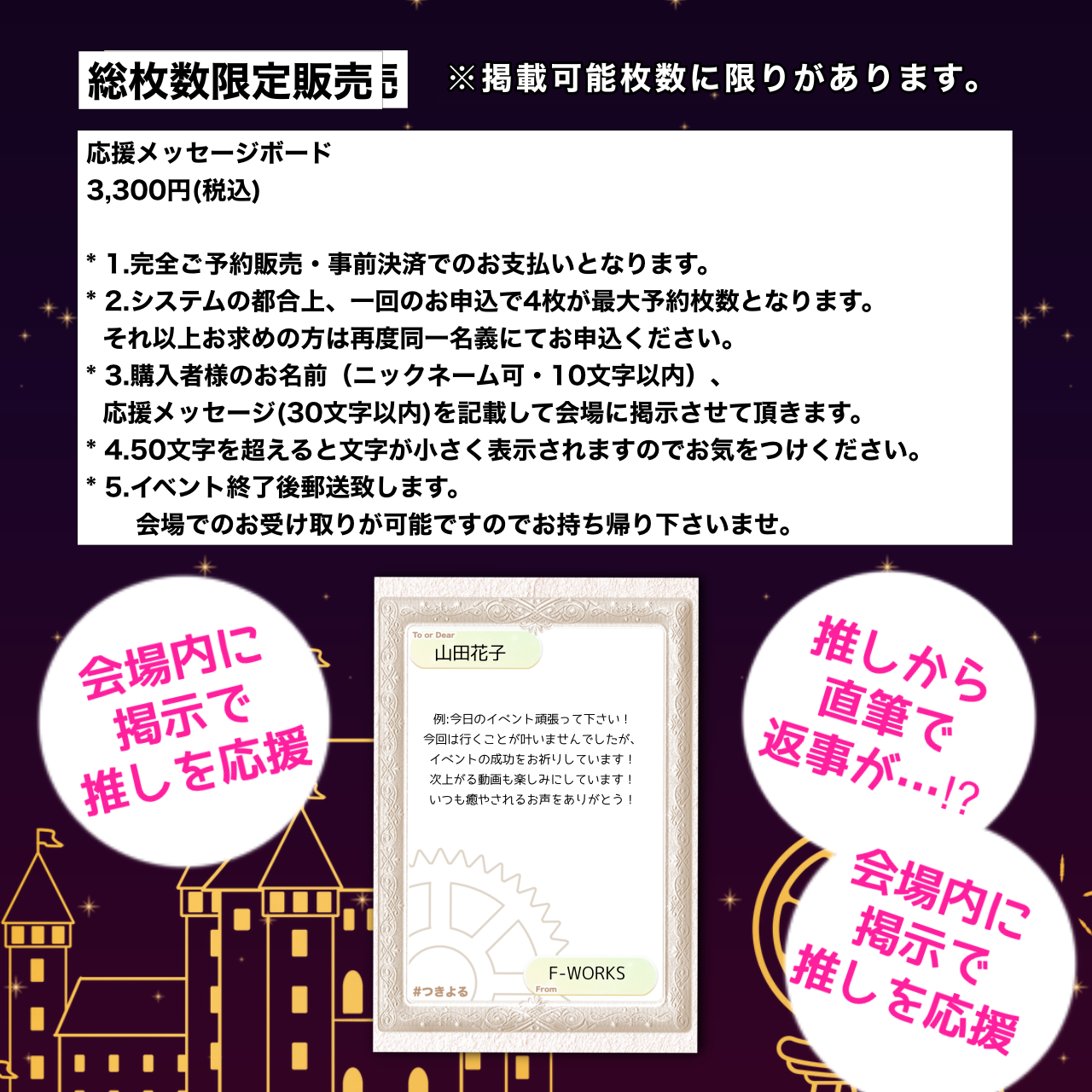 少しでも成功のお手伝いをしたいというお客様のメッセージを会場内に掲載致します。